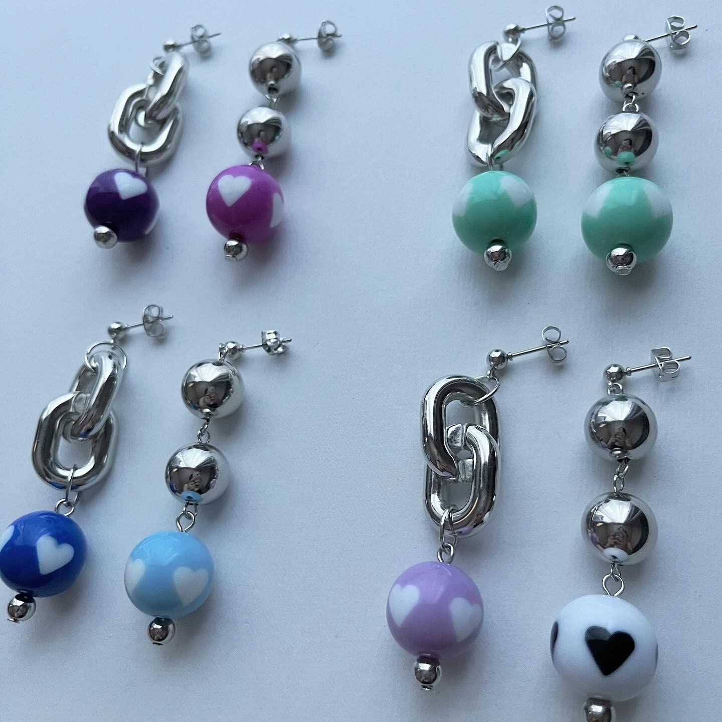 カラフル ハート ビーズ アシンメトリー シルバー ピアス/イヤリング